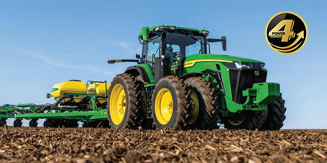 8R拖拉機(jī)配備符合國四排放標(biāo)準(zhǔn)的約翰迪爾 9.0升高壓共軌發(fā)動機(jī),